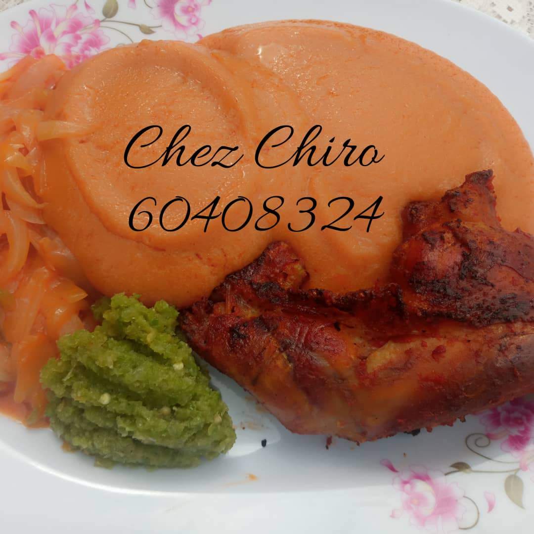 FCFA2500/3000/3500/.../6000avec poulet bicyclette braisé ou lapin braisé ou mouton braisé ou aileron braisé ou poisson (silivi ou tilapia) ou croupion de dinde. NB: Le plat avec le tilapia est à partir de 3500